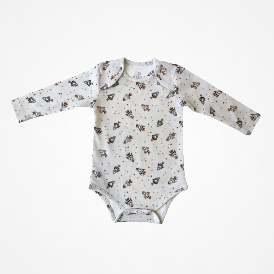 Cómodo y suave todo el día. Nuestro body de manga larga está confeccionado con tela delicada para cuidar la piel sensible del bebé. Ideal para mantenerlo abrigado sin perder libertad de movimiento. Un básico perfecto para cualquier estación.