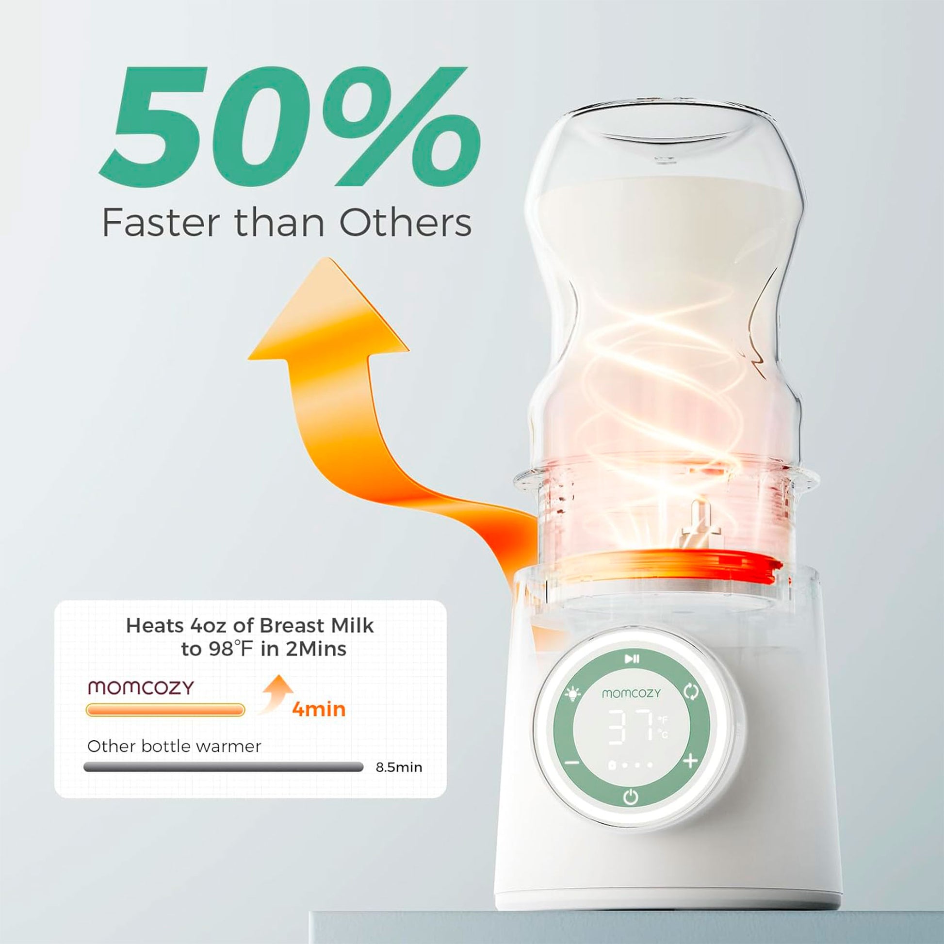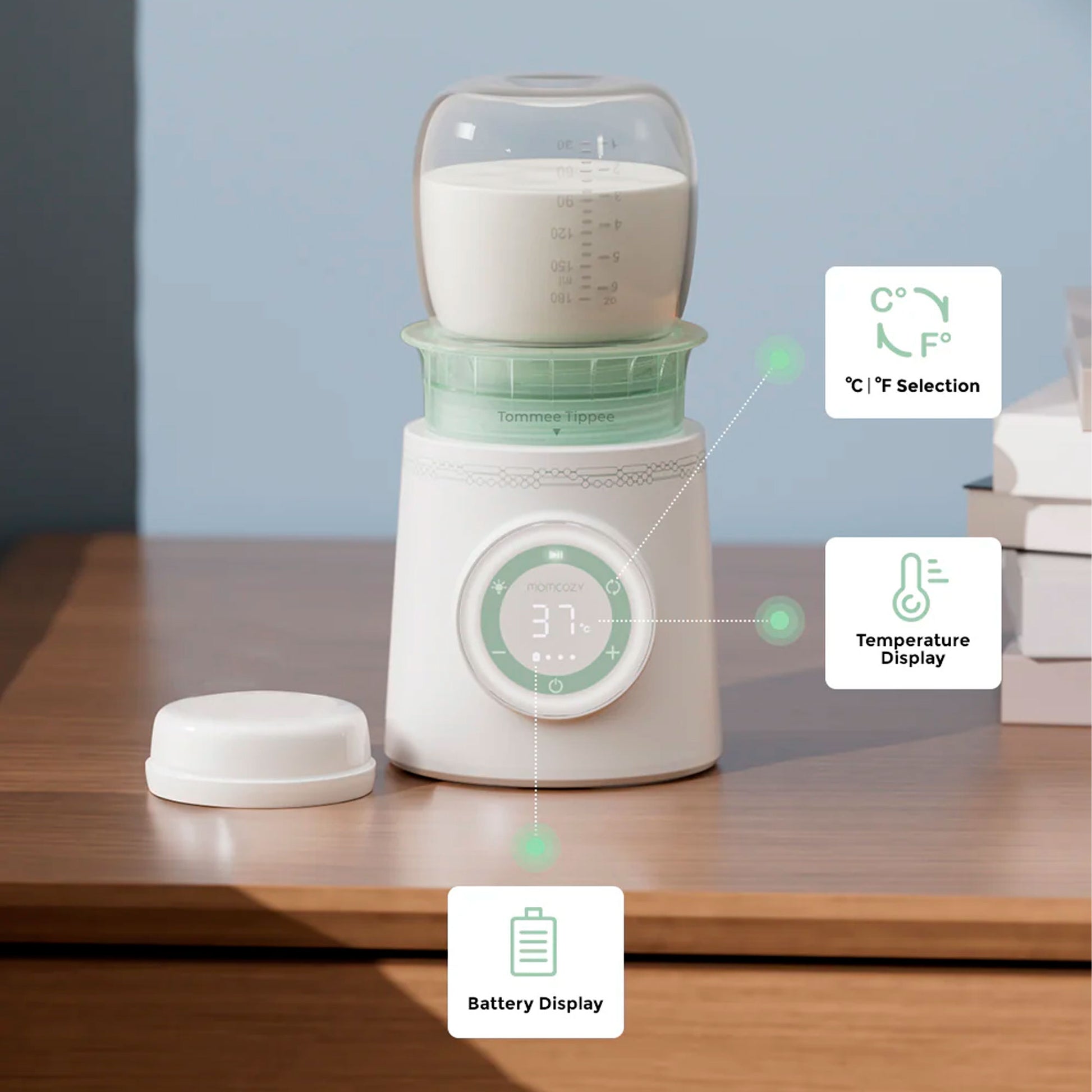 - Por ejemplo, el calienta biberones portátil Momcozy puede calentar la leche en sólo 2 minutos y ofrece varios ciclos de calentamiento para diferentes tamaños de biberón. Gracias a su batería recargable, podrá calentar la leche prácticamente en cualquier lugar, por lo que viajar con su bebé será coser y cantar.