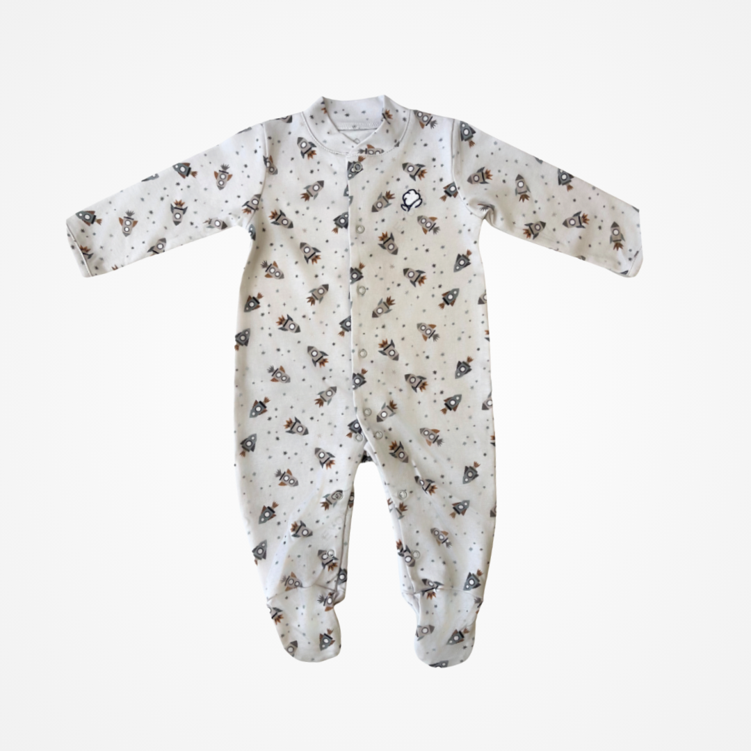 Un básico infalible. Este enterizo clásico con broches es práctico, cómodo y fácil de poner. Diseñado para hacer los cambios rápidos y sin molestias, es una prenda esencial en el día a día del bebé.