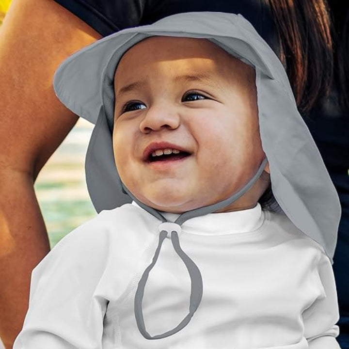 Protección solar durante todo el día para cabeza, cuello y ojos: nuestro sombrero con solapa para bebé de cobertura total con protección adicional para cuello y hombros mantiene al bebé cubierto todo el día, lo que reduce la aplicación de protector solar en esas áreas.