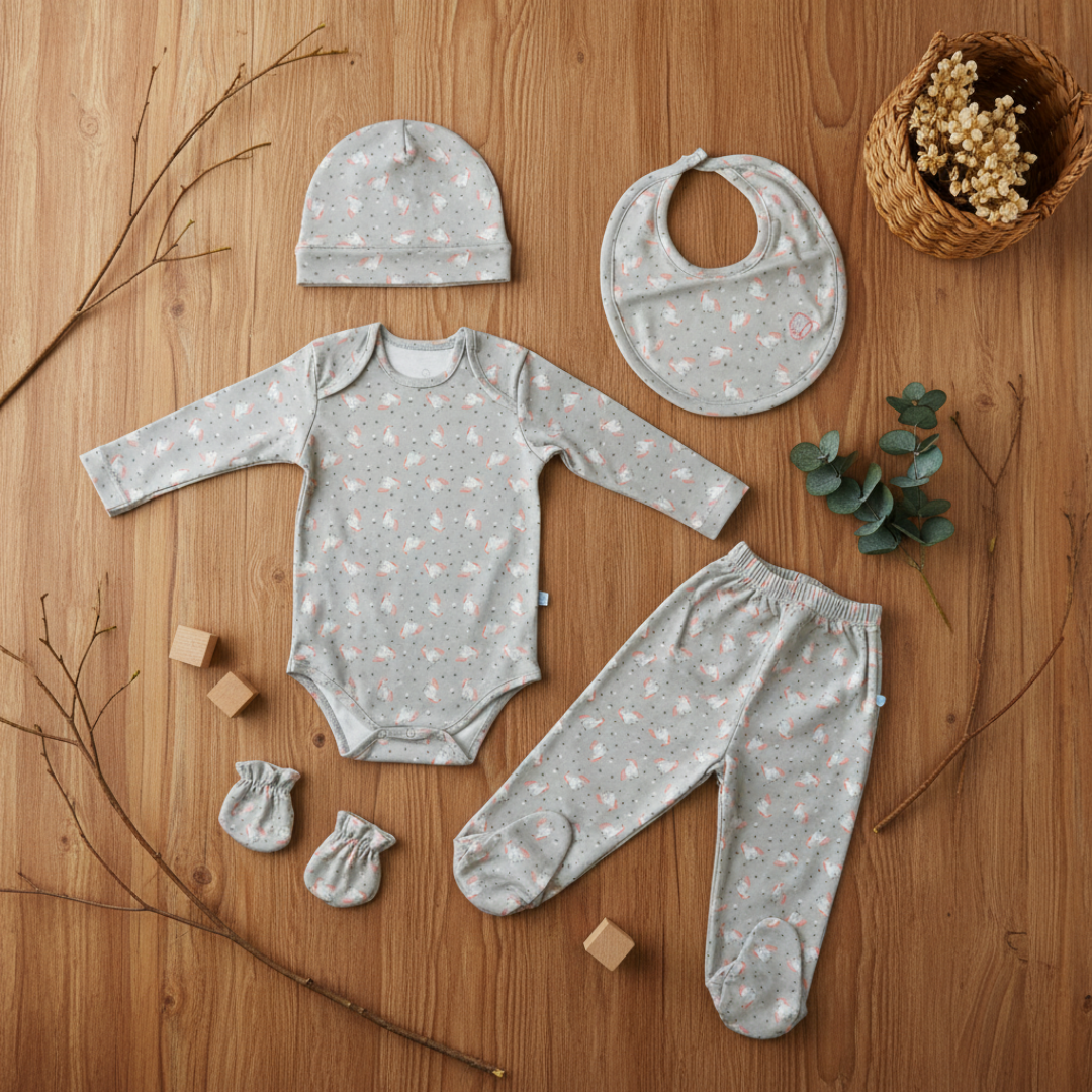 Un set delicado, práctico y lleno de ternura, perfecto para sorprender a futuros papás o dar la bienvenida a un nuevo bebé. Incluye: