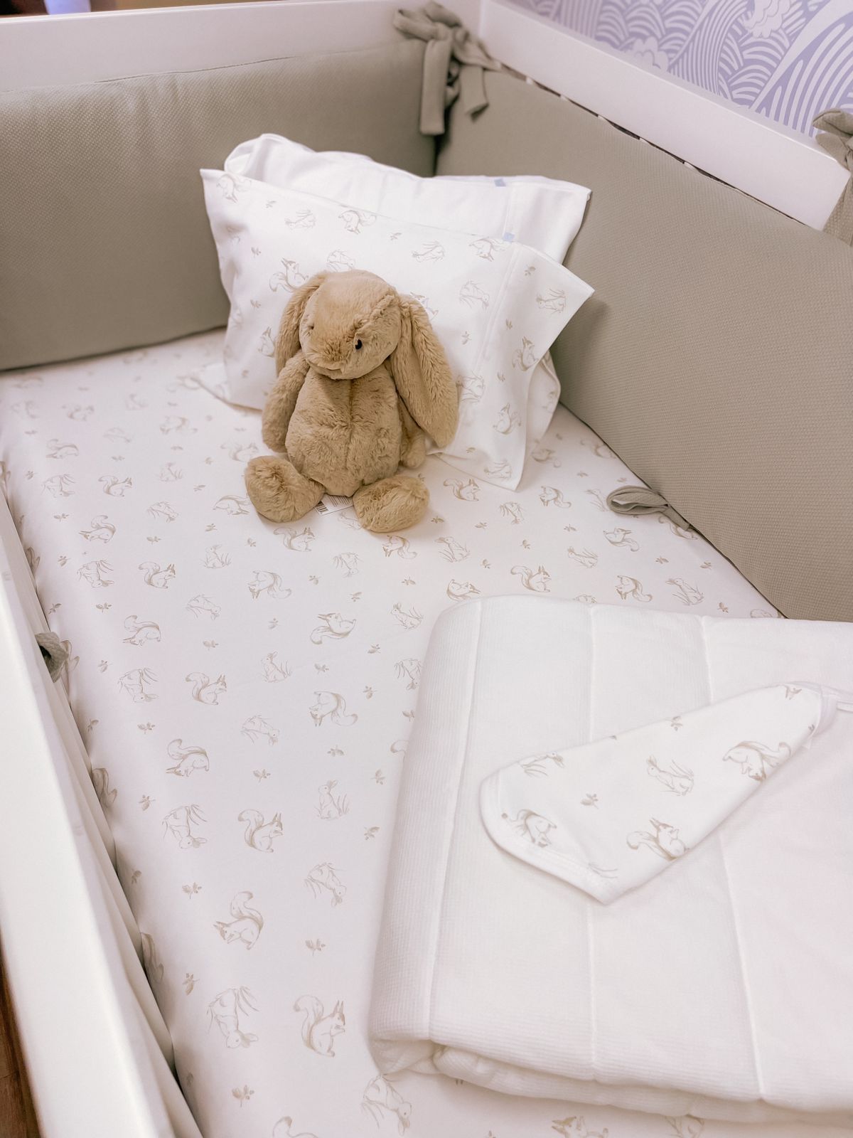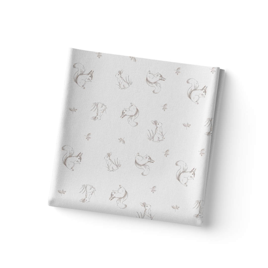 Sábana Bajera Estampada Cuna Ardilla y Conejito